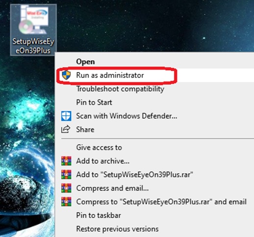- Nhấn chuột phải vào file setup WiseEyOn39Plus.exe và chọn Run as administrator