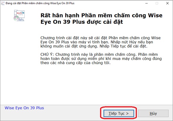 - Bấm Tiếp tục để cài đặt phần mềm