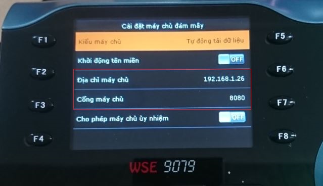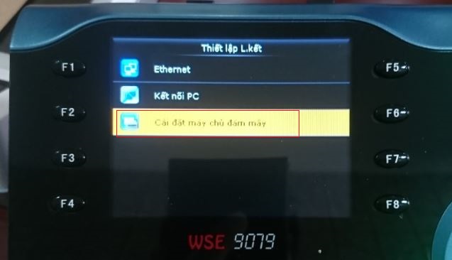Để cài khai báo địa chỉ IP máy chủ chúng ta vào Danh Mục Chính -> Thiết Lập L.Kết -> Cài đặt máy chủ đám mây. Sau đó chúng ta cài đặt địa chỉ IP máy chủ và cổng hoạt động máy chủ