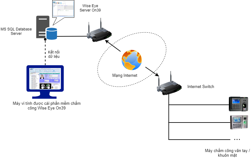 Wise Eye On 39 Server -> Wise Eye TAPusher Server là phần mềm lấy dữ liệu máy chấm công từ xa. Phần mềm này thông thường được cài đặt trên Server hoặc cài cùng với máy vi tính có cài Wise Eye On39. Sử dụng cùng dữ liệu với Wise Eye On39. Nó hoạt động thu thập dữ liệu chấm công liên tục từ các máy chấm công về dữ liệu phần mềm. Nó hỗ trợ giảm bớt các hoạt động tải dữ liệu giữa phần mềm Wise Eye On39 và các máy chấm công. Phạm vi hoạt động mạng LAN, WAN, Internet. Để được hỗ trợ bạn vui lòng liên hệ nhân viên bán hàng của chúng tôi.