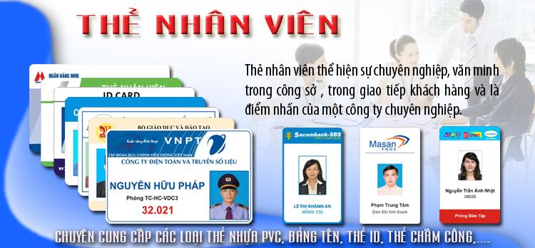 Nhằm đáp ứng nhu cầu làm thẻ nhân viên cho Khách sạn, Công ty, Câu lạc bộ,café & Bar, Siêu thị, Ngân hàng, trung tâm thương mại,... In Thẻ nhân viên: In bằng chất liệu PVC.